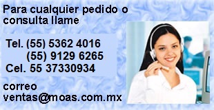 ![]() Tel Oficina (55) 5362 4016 nuevo telefono (55) 9129 6265 Visite nuestra tienda en: Calle Tule No. 24-C Esq Av. Gustavo Baz, Tlalnepantla, Estado de México, CP. 54080